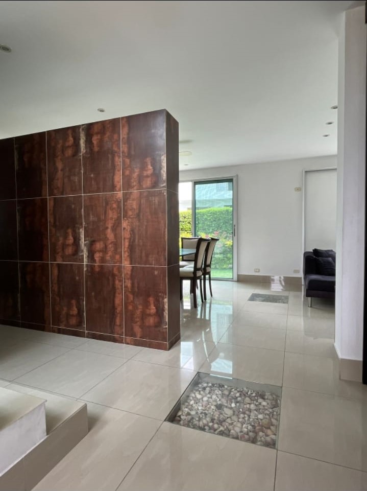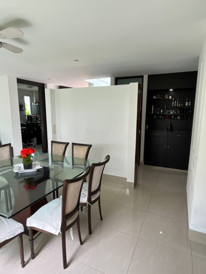 Contiene sala, comedor, estudio, cocina, cuarto de servicio con baño, patio amplio, 3 habitaciones, sala televisión o 4ta habitación, terraza, deposito y dos parqueaderos.